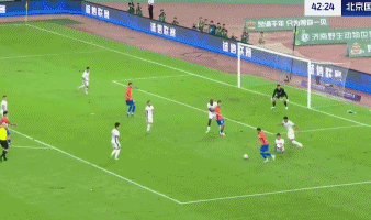 第43分钟,卡扎伊什维利两次晃倒池忠国之后左脚低射破门,3比0!第45分钟,45禁区内背身回做,马德鲁加吊射破门,4比0!
